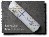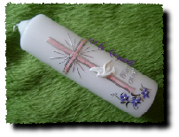 Die Farbe des Motivs und das Motiv der Taufkerze selbst können gerne auch individuell gestaltet werden.