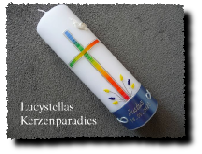 Taufkerze Regenbogenkreuz Ähren blau silber