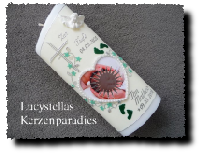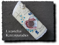 Die Farbe des Motivs und das Motiv der Taufkerze selbst können gerne auch individuell gestaltet werden.