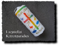 Das Motiv einer Tisch- oder Patenkerze kann jeder Taufkerze, Kommunionkerze, Hochzeitskerze oder anderen Kerze aus meinem Sortiment farblich angepasst werden.