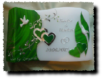 Die Farbe des Motivs und das Motiv der Hochzeitskerze selbst können gerne auch individuell gestaltet werden.