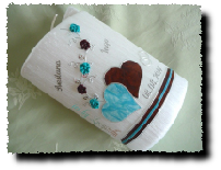 Hochzeitskerze SF24 perlmutt Herz Ranke türkis braun silber