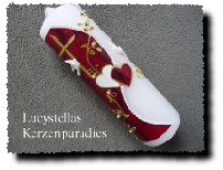 Hochzeitskerze Modern Herz Kreuz Tauben rot gold