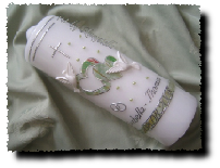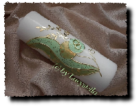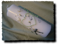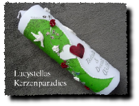 Hochzeitskerze Herzen Kreuz Tauben grün silber