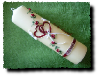 Hochzeitskerze Rahmen zwei Herzen Ranke Röschen grün rot weiß silber