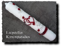 Hochzeitskerze zwei Herzen Ranke lang weinrot silber