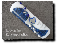 Hochzeitskerze Modern Herz Kreuz Strass blau silber