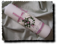 Hochzeitskerze Modern Kreuz Ranke Taube Herz rosa weiß silber