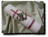 Hochzeitskerze Kreuz Blütenranke rot silber