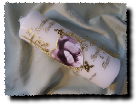 Hochzeitskerze Herz Kreuz Perlen créme lila gold