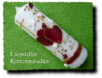 Die Farbe des Motivs und das Motiv der Hochzeitskerze selbst können gerne auch individuell gestaltet werden.