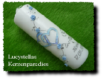 Hochzeitskerze zwei Herzen Ranke blau silber