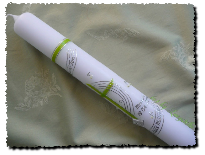 Individuelle, auf Kundenwunsch verzierte Taufkerzen, Hochzeitskerzen, Kommunionkerzen von lucystellas-kerzenparadies.de