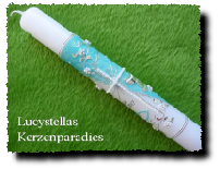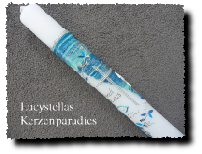Die Farbe des Motivs und das Motiv der Kommunionkerze selbst können gerne auch individuell gestaltet werden.