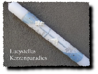 Kommunionkerze Trend Kreuz Rahmen Engel Sterne Strass hellblau silber