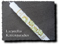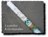 Kommunionkerze Kreuz Röschenranke Taube Engel gold weiß grün