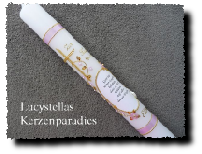Kommunionkerze Kreuz Ranke Herzen Engel Spruch perlmutt rosa silber