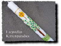 Kommunionkerze Trend Lebensbaum Sonne grün gold