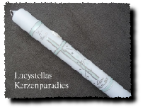 Alle auf dieser Seite bereitgestellten Informationen und Gestaltungselemente sind urheberrechtlich geschützt. Jegliche Vervielfältigung der auf diesen Seiten zur Verfügung gestellten Texten, Bildern und Grafiken bedarf der ausdrücklichen Erlaubnis des Unternehmens oder des Autors in Schriftform. Das Urheberrecht des Autors bleibt unberührt. Das Nutzungsrecht liegt bei dem Herausgeber und darf ohne schriftliche Genehmigung nicht an Dritte weitergegeben werden. Alle Texte ohne Autorenangabe unterliegen dem Urheberrecht des Herausgebers. Ebenfalls untersagt ist jegliche Vervielfältigung auf andere elektronische und nicht elektronische Medien. Die Verwertung und Vervielfältigung dieser Bild- und Textdateien ohne schriftliche Genehmigung von "Lucystellas-Kerzenparadies" oder "Andrea Weigand Kerzendesign" ist untersagt (§ 72 i.V.m. § 2 Abs. 1 Nr. 5 UrhG) und wird strafrechtlich verfolgt.