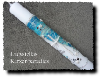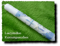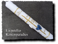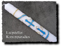 Kommunionkerze Kreuz Ranke Engel Spruch blau silber