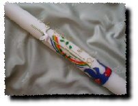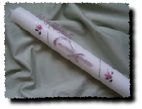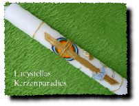 Die Farbe des Motivs und das Motiv der Kommunionkerze selbst können gerne auch individuell gestaltet werden.