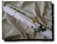 Kommunionkerze Motto "Pusteblume und Löwenzahn" silber