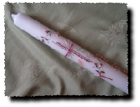Der Kaufpreis der Kommunionkerze ist inklusive einem Namen (Einzelname) und einem Datum!