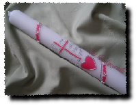 Kommunionkerze Kreuz Herz Perlen pink silber