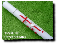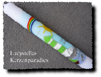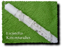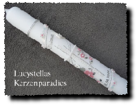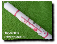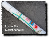 Die Farbe des Motivs und das Motiv der Kommunionkerze selbst können gerne auch individuell gestaltet werden.