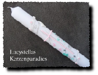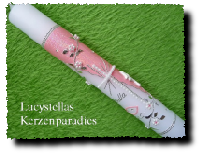 Kommunionkerze Mädchen Perle Ranke Schmetterling rosa türkis silber