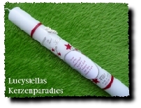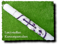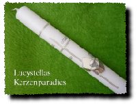 Alle auf dieser Seite bereitgestellten Informationen und Gestaltungselemente sind urheberrechtlich geschützt. Jegliche Vervielfältigung der auf diesen Seiten zur Verfügung gestellten Texten, Bildern und Grafiken bedarf der ausdrücklichen Erlaubnis des Unternehmens oder des Autors in Schriftform. Das Urheberrecht des Autors bleibt unberührt. Das Nutzungsrecht liegt bei dem Herausgeber und darf ohne schriftliche Genehmigung nicht an Dritte weitergegeben werden. Alle Texte ohne Autorenangabe unterliegen dem Urheberrecht des Herausgebers. Ebenfalls untersagt ist jegliche Vervielfältigung auf andere elektronische und nicht elektronische Medien. Die Verwertung und Vervielfältigung dieser Bild- und Textdateien ohne schriftliche Genehmigung von "Lucystellas-Kerzenparadies" oder "Andrea Weigand Kerzendesign" ist untersagt (§ 72 i.V.m. § 2 Abs. 1 Nr. 5 UrhG) und wird strafrechtlich verfolgt.