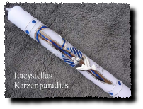 Kommunionkerze Junge Kreuz Fußspuren blau gold