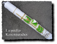 Kommunionkerze Junge Modern Kreuz Tafeln grün gold