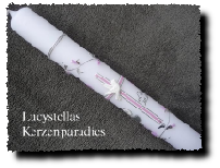 Kommunionkerze Modern Maedchen Kreuz Ranke Taube Bibel Strass pink silber