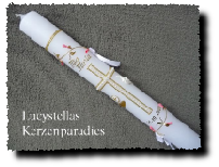 Kommunionkerze Mädchen Blütenkreuz pink silber