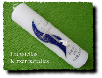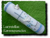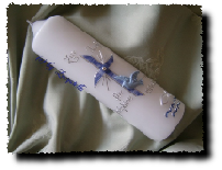 Taufkerze Kreuz Ranke Taube Engel blau silber