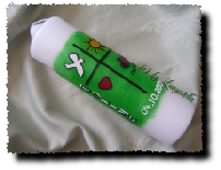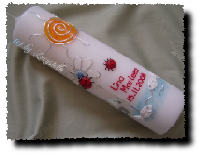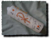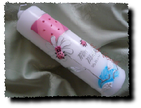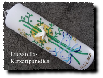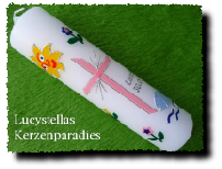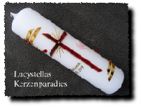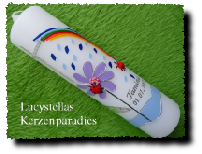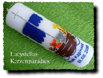 Die Farbe des Motivs und das Motiv der Taufkerze selbst können gerne auch individuell gestaltet werden.