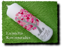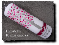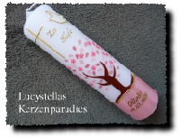 Taufkerze Modern Lebensbaum Herzen Blümchen Strass rosa pink silber