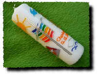 Taufkerze Kreuz Sonne Fisch in verschiedenen Farben
