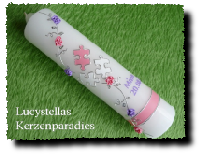Taufkerze Puzzle Ranke rosa weiß flieder silber