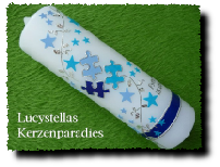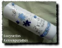Taufkerze Modern Junge Puzzle Ranke blau hellblau weiss silber