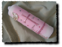 Taufkerze Kreuz Taube rosa rosa silber