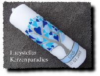 Taufkerze Modern Junge Lebensbaum Herzen blau silber