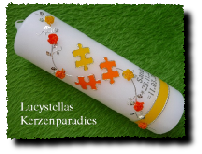 Taufkerze - Geburtskerze - Jahreskerze Kunterbunt orange