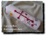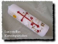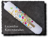 Taufkerze Kreuz Sonne Fisch Blumen in verschiedenen Farben