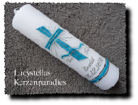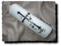 Taufkerze Kreuz blau silber