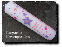 Taufkerze - Geburtskerze- Jahreskerze Mädchen Sterne rosa lila pink