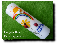 Taufkerze Glückskind Sonne Regenbogen bunt gold
