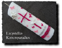 Taufkerze Modern Mädchen SFov5 Schmetterlinge Engel Taube pink rosa silber