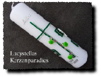Taufkerze Modern Kreuz Tafeln Röschen grün silber